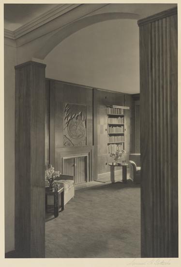 Maurice S. Benjamin [residence], 211 Central Park West, N.Y.C. Living room direct view to fireplace.