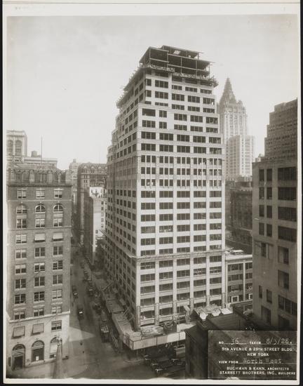 8/3/28. 5th Avenue & 29th Street Bldg. New York. View from Northwest. Buchman & Kahn, Architects. Starrett Brothers, Inc., Builders.