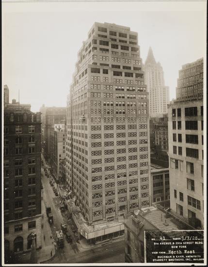 9/7/28. 5th Avenue & 29th Street Bldg. New York. View from Northwest. Buchman & Kahn, Architects. Starrett Brothers, Inc., Builders.