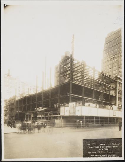 6/8/28. 5th Avenue & 29th Street Bldg. View from Northwest. Buchman & Kahn, Architects. Starrett Brothers, Inc., Builders.