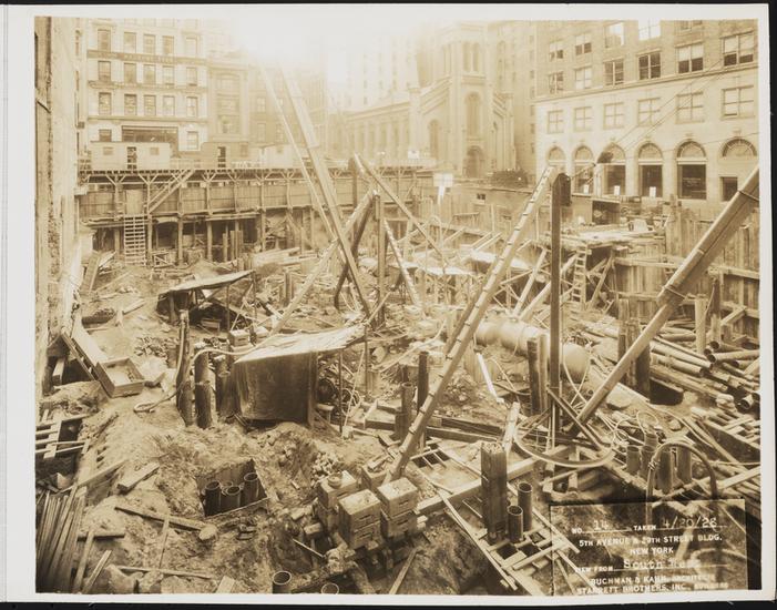 Description 4/20/28. 5th Avenue & 29th Street Bldg. New York. View from Southwest. Buchman & Kahn, Architects. Starrett Brothers, Inc., Builders.