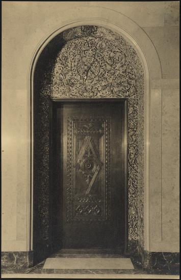 Building, northwest corner 37th Street and 6th Avenue [Elevator door.]