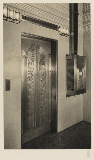 Building, northwest corner 37th Street and 6th Avenue [Elevator door.]