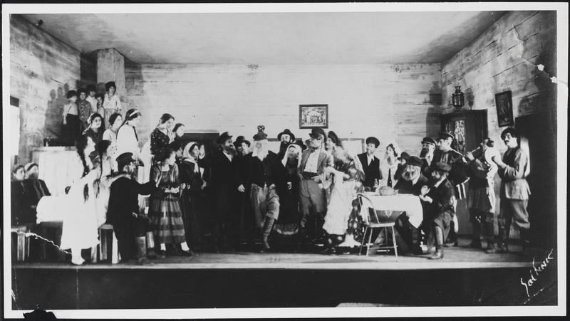 [Wedding ceremony scene in Peretz Hirschbein's "Idle Inn".]