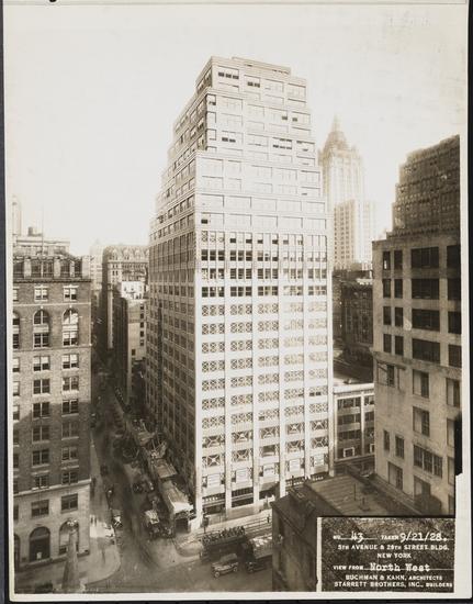 9/21/28. 5th Avenue & 29th Street Bldg. New York. View from Northwest. Buchman & Kahn, Architects. Starrett Brothers, Inc., Builders.