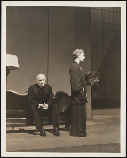 [Alla Nazimova as Mrs. Helen Alving and McKay Morris as Pastor Manders in "Ghosts".]