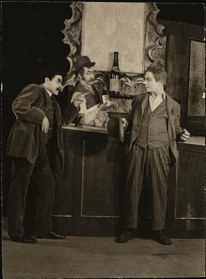 Michael Gorrin is on the right. Standardized transliteration of the English title is "Der braver soldat Shveyik".