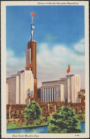 Trylon and Perisphere and "Four Victories of Peace"