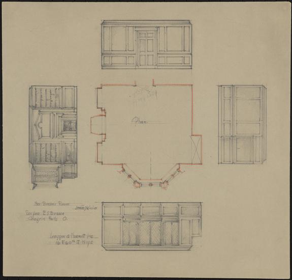 Mantel Elevation Showing Bookcases Each Side of Mantel. Mrs. Burke's Bedroom