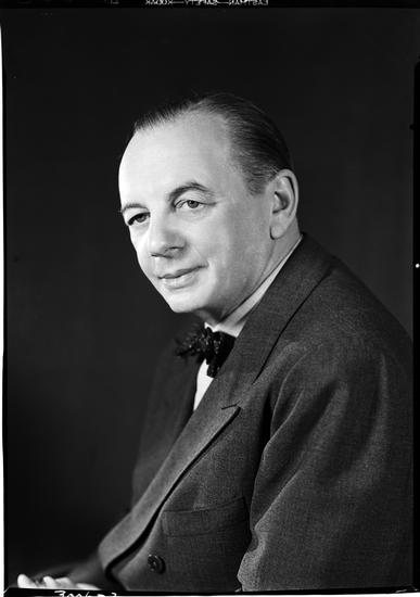 [Reinhold Schünzel as Emperor Franz Josef and Joan Roberts as the title role in "Marinka".]