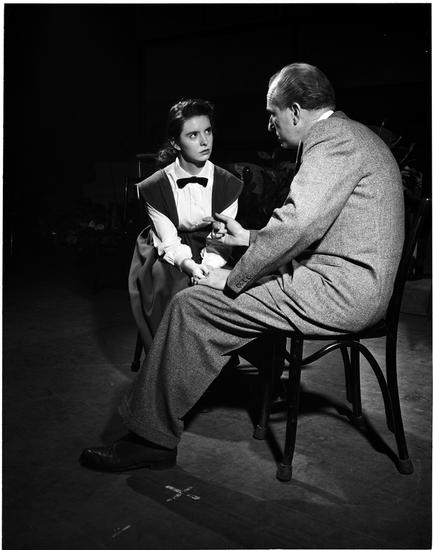 [Margaret O'Brien and unidentified woman at a rehearsal for "Child of the Morning".]