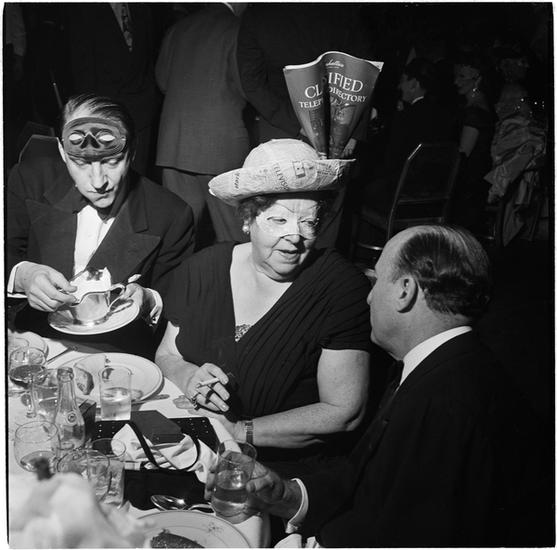 Society Ball at the Waldorf Astoria [Woman wearing an elaborate mask and headpiece.]