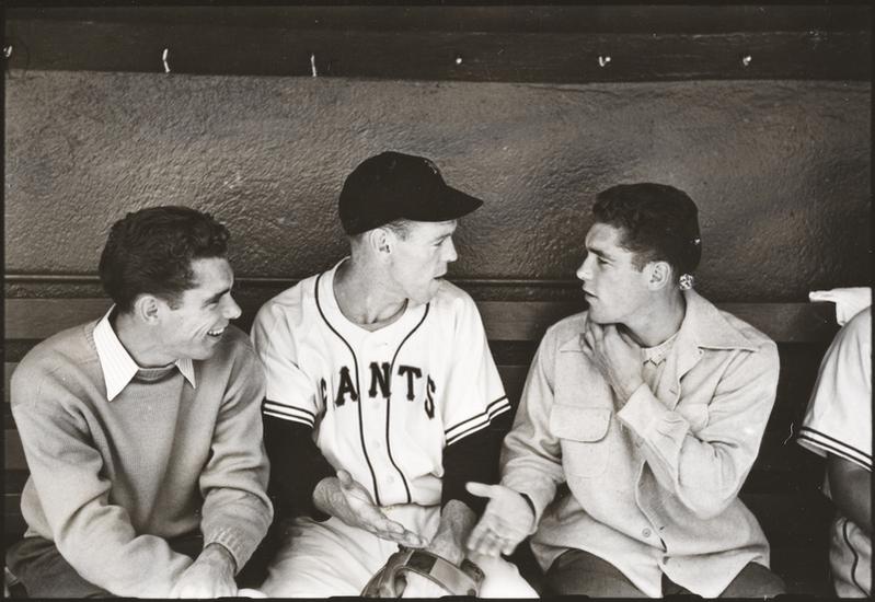 Walter Cartier, Prizefighter of Greenwich Village [Walter and Vincent Cartier talking to a New York Giants player in the dugout.]