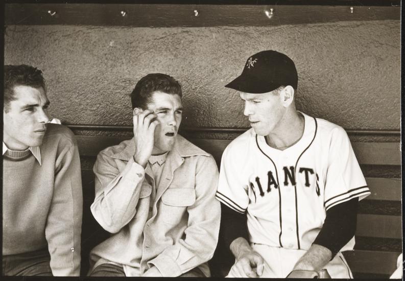 Walter Cartier, Prizefighter of Greenwich Village [Walter and Vincent Cartier talking to a New York Giants player in the dugout.]