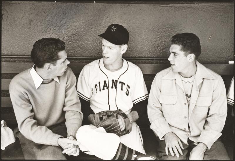 Walter Cartier, Prizefighter of Greenwich Village [Walter and Vincent Cartier talking to a New York Giants player in the dugout.]