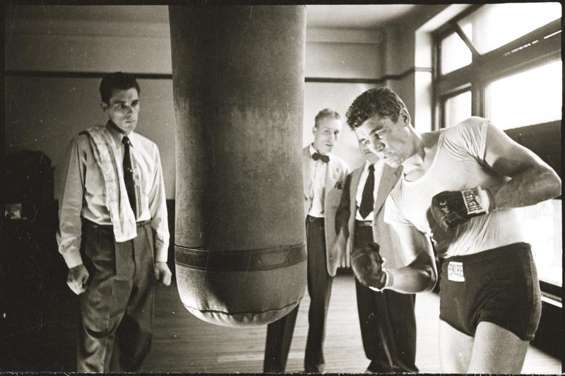 Walter Cartier, Prizefighter of Greenwich Village [Walter Cartier hitting a punching bag as men watch.]