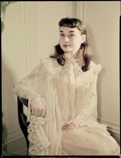 [Julie Harris presenting Theatre World awards for Promising Personalities to Audrey Hepburn and Tony Bavaar.]