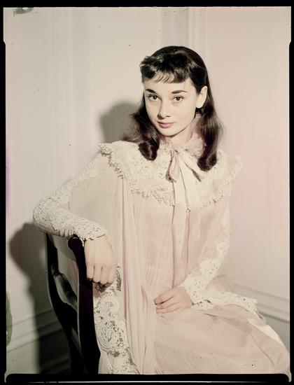 [Julie Harris presenting Theatre World awards for Promising Personalities to Audrey Hepburn and Tony Bavaar.]