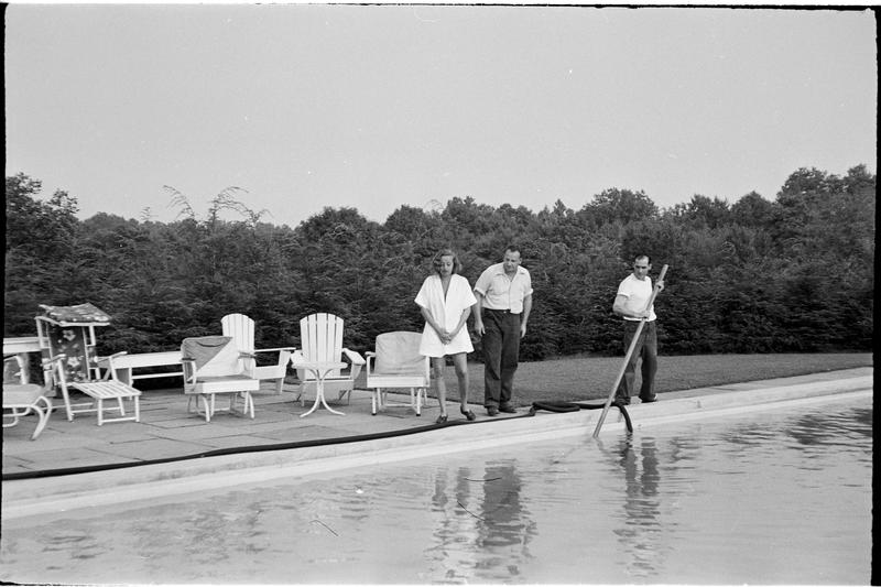 Tallulah Bankhead [Tallulah Bankhead and men at her swimming pool.]