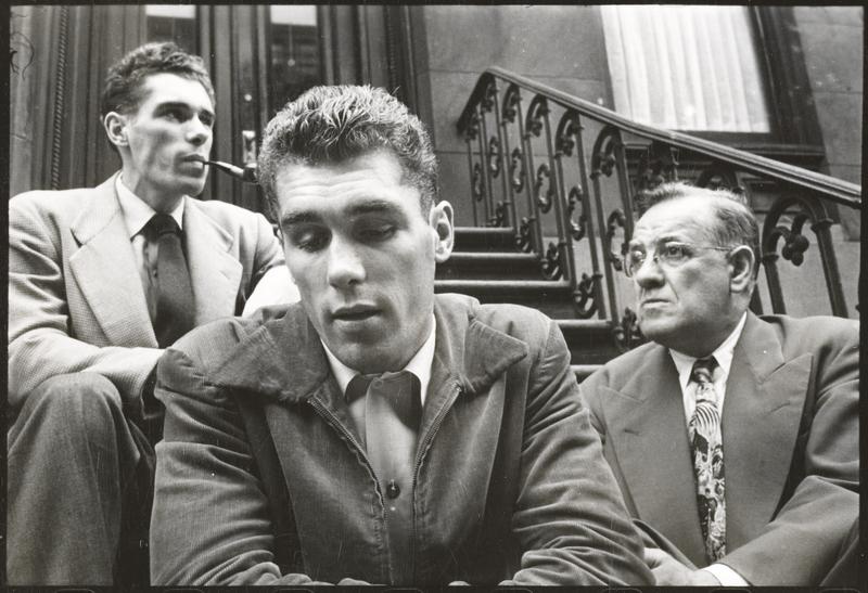 Walter Cartier, Prizefighter of Greenwich Village [Walter and Vincent Cartier with an unidentified man sitting on steps.]