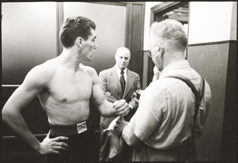 Walter Cartier, Prizefighter of Greenwich Village [Man preparing Walter Cartier for a fight.]