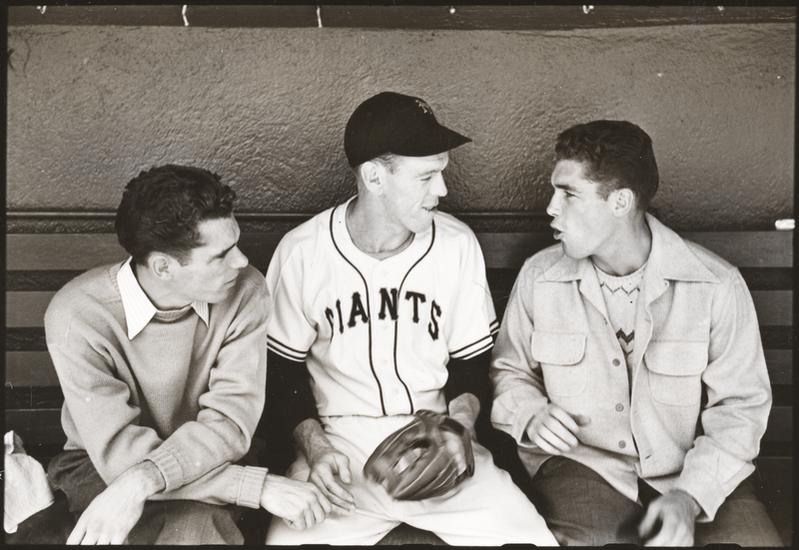 Walter Cartier, Prizefighter of Greenwich Village [Walter and Vincent Cartier talking to a New York Giants player in the dugout.]