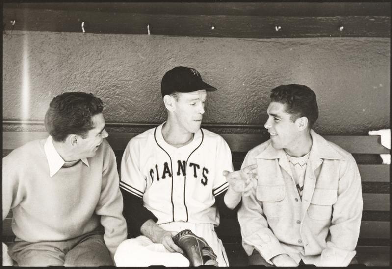 Walter Cartier, Prizefighter of Greenwich Village [Walter and Vincent Cartier talking to a New York Giants player in the dugout.]
