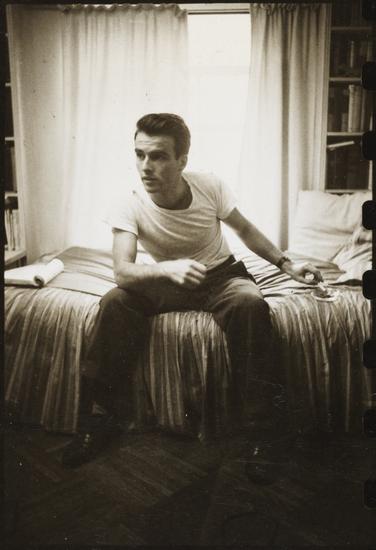 Montgomery Clift - Glamour Boy in Baggy Pants [Montgomery Clift sitting on a bed.]
