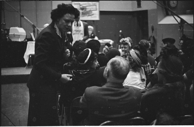 Radio Grand Slam Show [Irene Beasley talking to a man in the audience during a recording of "Grand Slam".]