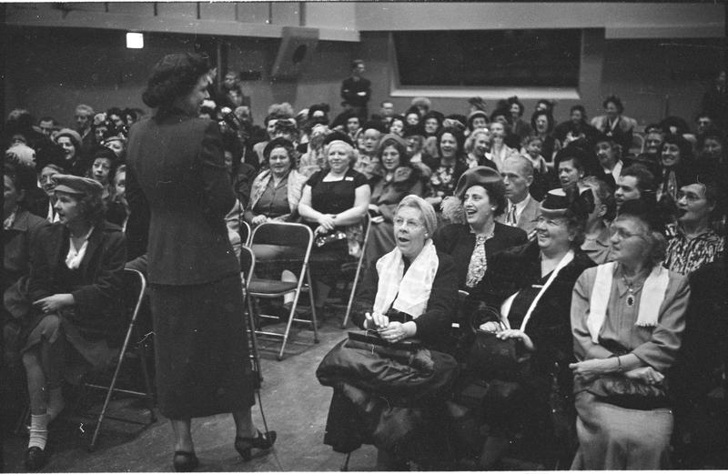 Radio Grand Slam Show [Irene Beasley talking to a man in the audience during a recording of "Grand Slam".]