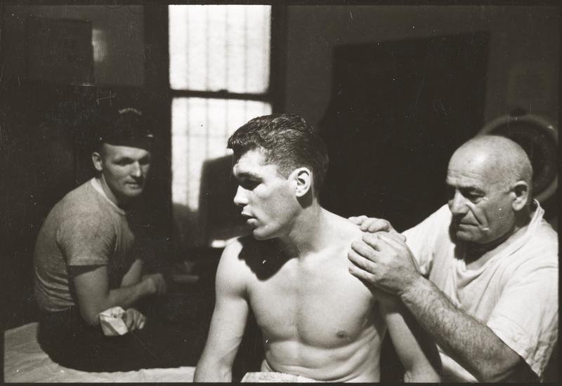 Walter Cartier, Prizefighter of Greenwich Village [Man massaging Walter Cartier's shoulder.]