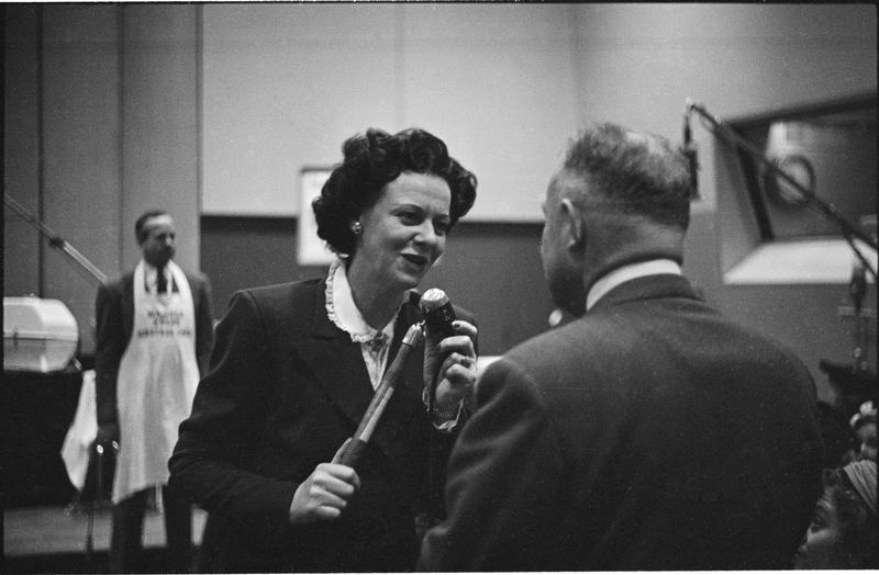 Radio Grand Slam Show [Irene Beasley talking to a man during a recording of "Grand Slam".]
