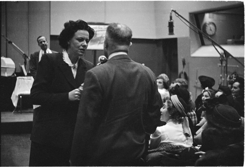 Radio Grand Slam Show [Irene Beasley talking to a man during a recording of "Grand Slam".]
