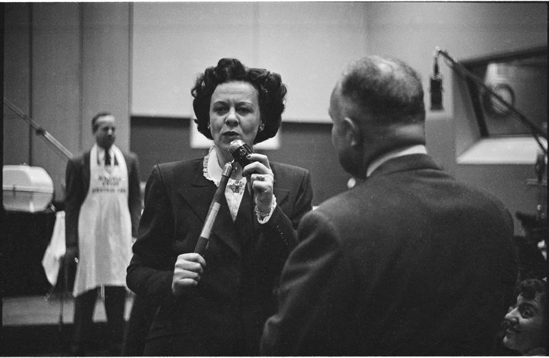 Radio Grand Slam Show [Irene Beasley talking to a man during a recording of "Grand Slam".]