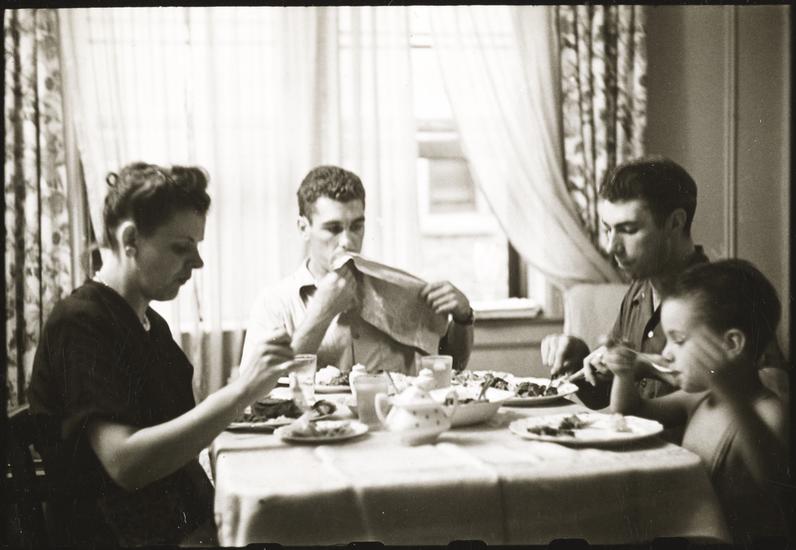 Walter Cartier, Prizefighter of Greenwich Village [Walter and Vincent Cartier eating a meal with their aunt and a young boy.]