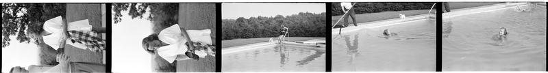 Tallulah Bankhead [Tallulah Bankhead and men at her swimming pool.]