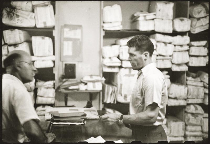 Walter Cartier, Prizefighter of Greenwich Village [Walter Cartier picking up a package at a post office.]