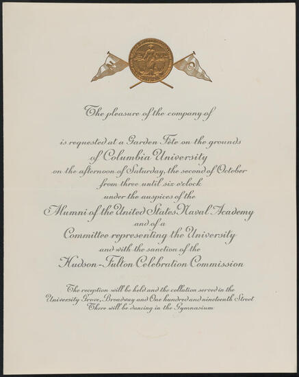 [Invitation to be a guest of the Hudson-Fulton Celebration Commission.]
