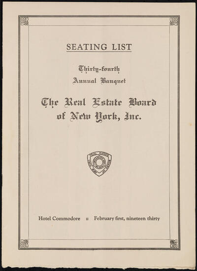 Thirty-fourth Annual Banquet of the Real Estate Board of New York, Inc.
