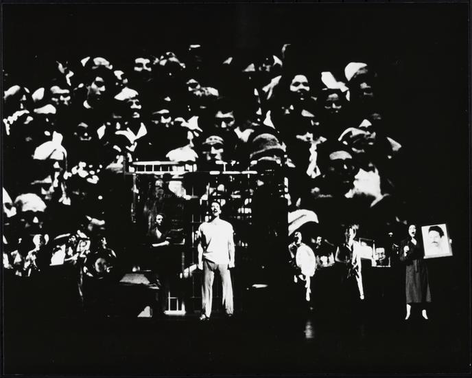 [Brent Carver as Molina, Chita Rivera as the Spider Woman/Aurora and Anthony Crivello as Valentin in "Kiss of the Spider Woman".]