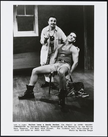 [Stephen Bogardus as Gregory Mitchell and Justin Kirk as Bobby Brahms in "Love! Valour! Compassion!".]