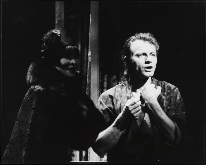 [Brent Carver as Molina, Chita Rivera as the Spider Woman/Aurora and Anthony Crivello as Valentin in "Kiss of the Spider Woman".]