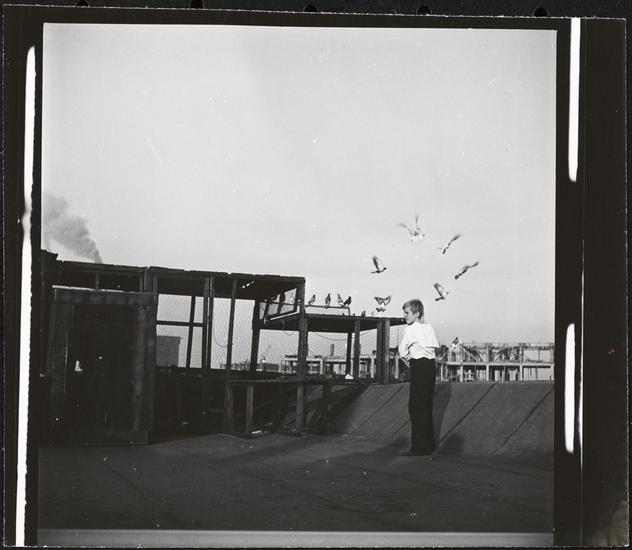 Shoe Shine Boy [Mickey holding pigeons in a rooftop pigeon coop.]