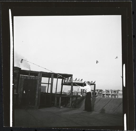 Shoe Shine Boy [Mickey releasing pigeons from a rooftop coop.]
