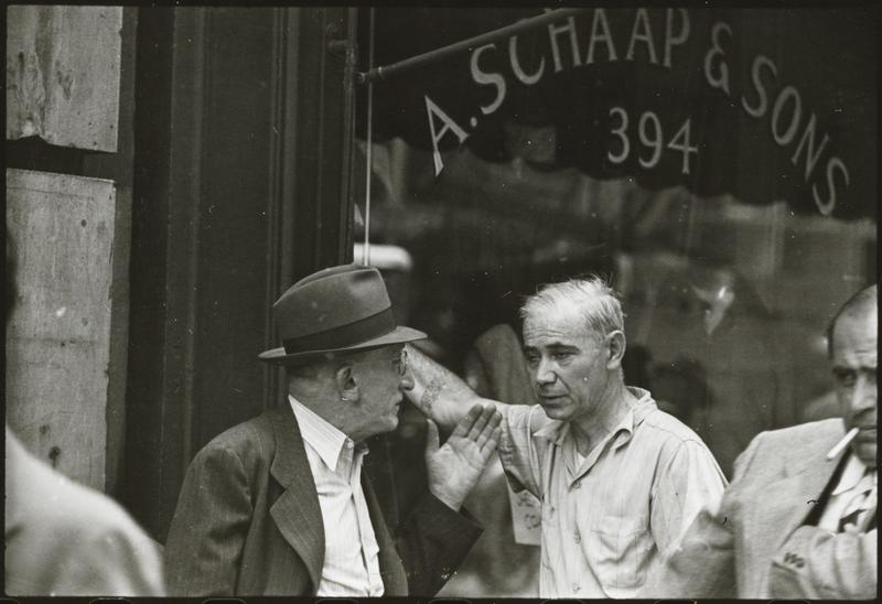 Bronx Street Scene [Men talking outside a branch of Modern Industrial Bank.]