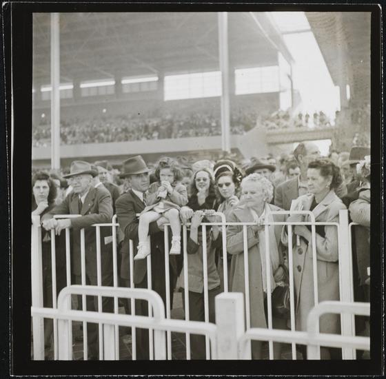 Aqueduct Race Track [Woman reading the racetrack's program.]