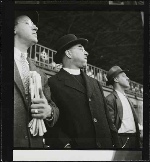 Aqueduct Race Track [Men in the stands at the racetrack.]