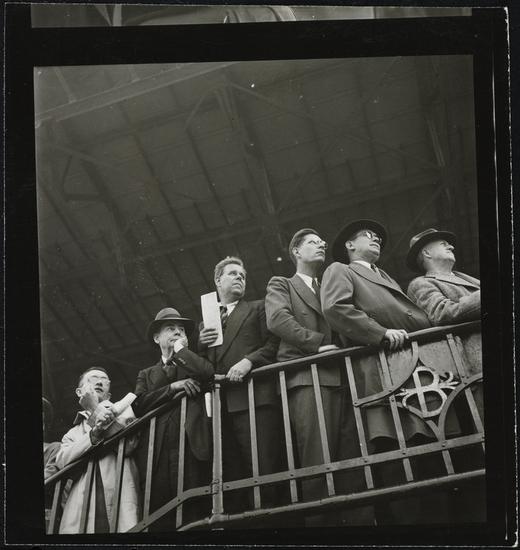 Aqueduct Race Track [Spectators reading newspapers at the racetrack.]