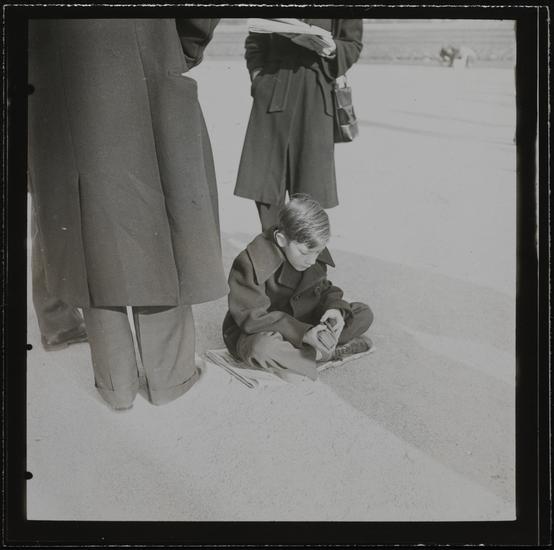 Aqueduct Race Track [Boy sitting on newspapers.]