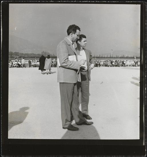 Aqueduct Race Track [Men in the stands at the racetrack.]